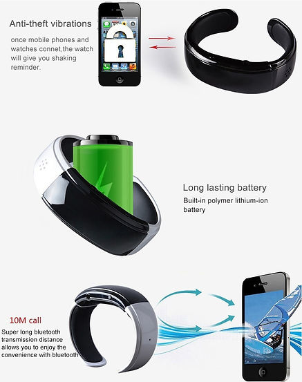 Display Caller ID, Time, SMS/Memento/Alarm clock, Music player, Anti-lose Vibrate, Answer Call.